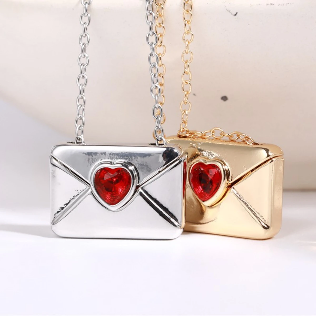 Some messages are too special to be left in an inbox. The Yukona Crimson Mail necklace features a classic copper envelope pendant, inlaid with a vibrant red heart to symbolize a letter "sealed with a kiss". This interactive piece combines the charm of vintage stationery with modern jewelry design, making it the ultimate conversation starter for your next event or date night.